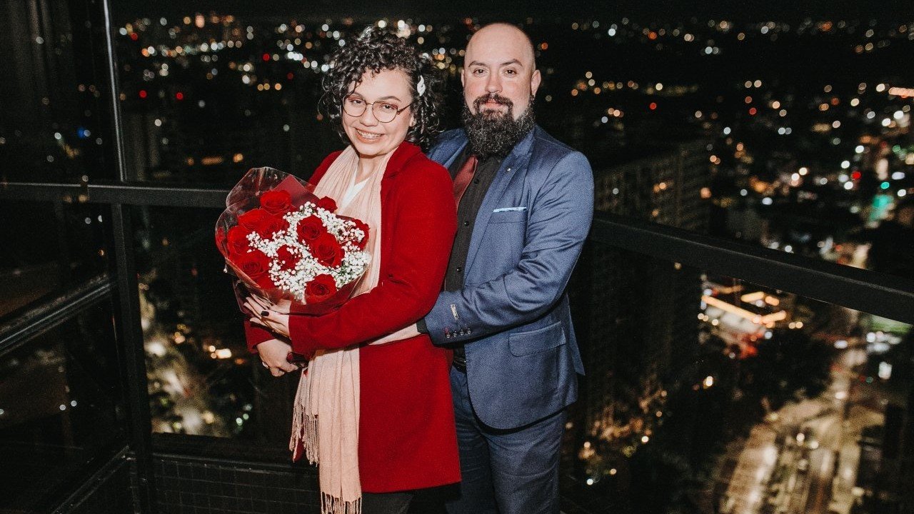 Nós, os noivos, estamos muito felizes em recebê-los para celebrar esta alegria junto com vocês.